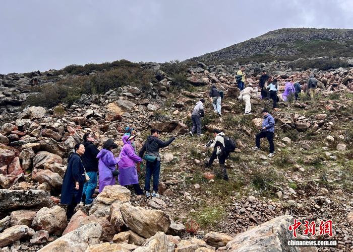 图为项目启动当天,50余名专家学者、媒体代表开展色季拉山生物多样性科考活动。潘旭临 摄