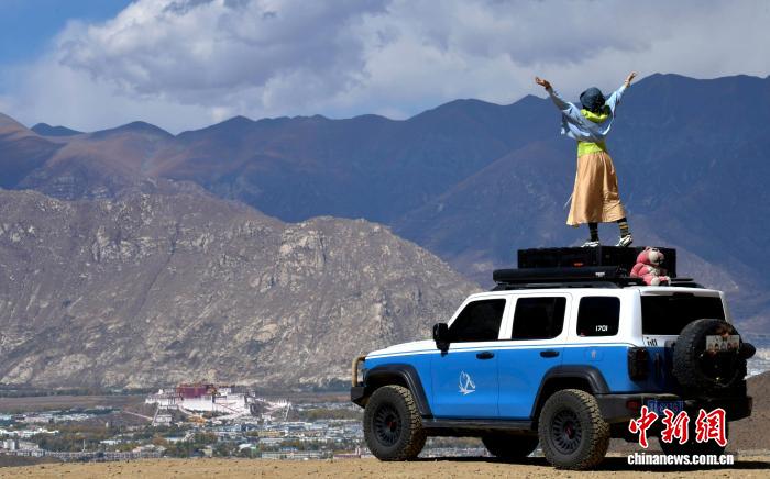 10月20日,游客在拉萨天堂草原自然风景区与布达拉宫“同框”。天堂草原自然风景区位于拉萨河南岸,与布达拉宫隔河相望。凭借着地理优势和自然风景,吸引众多游客前来拍照。中新社记者 李林 摄