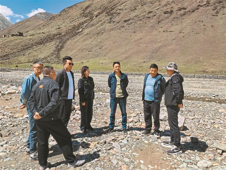 图为山南市生态环境局执法人员在砂石场检查。记者 巴桑旺姆 摄