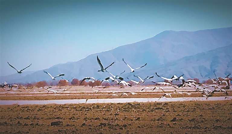 拉萨市林周县境内的黑颈鹤。记者 白玛泽旺 摄