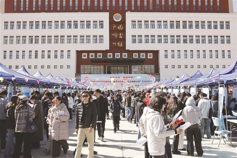 近日,西藏大学举办2026年“春风送暖就业领航”春季校园双选会。招聘会现场,校领导班子及自治区教育厅高校毕业生就业服务中心相关负责人,与用人单位代表和求职学生亲切交流。