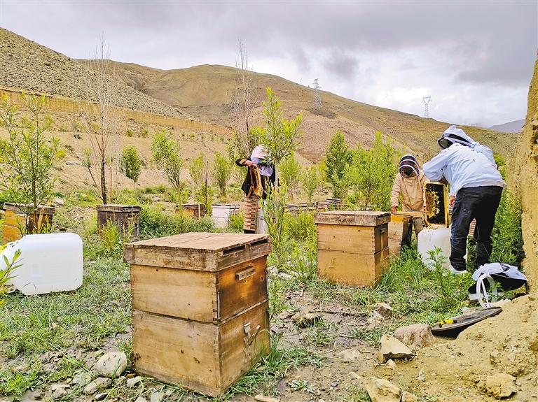 如今,在安徽对口支援的山南市错那、措美、浪卡子三地,蜜蜂养殖业发展“蜂”头正劲,酿出的蜂蜜营养价值高、纯净无污染,带动100多个农牧民家庭每户增收3万多元。