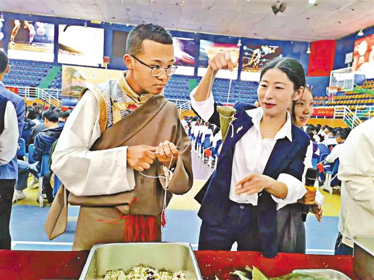 “树上的鸟儿成双对,绿水青山带笑颜……”在山南市第二高级中学,当悠扬婉转的黄梅戏曲调用藏语唱出,汉藏文化在交融中绽放多彩魅力。安徽省“组团式”教育援藏人才金慧琳在山南第二高级中学援藏期间,大力挖掘皖藏传统文化中符合“课程思政”建设的重要资源,成功探索并开创性地组建了全区首个藏语黄梅戏学生社团。如今,社团运行及影响力远超预期,以“一出好戏”为媒,深化了皖藏两地的交往交流,增进了互信了解,促进了两地人民情感和文化交融。