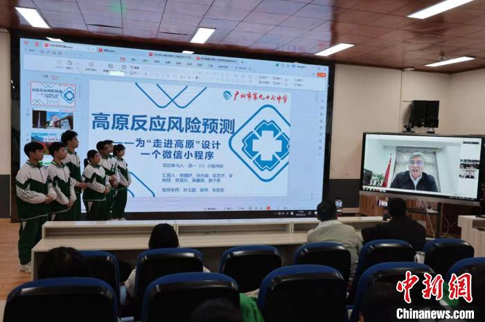 图为四川大学华西医院院长、高原医学中心主任罗凤鸣教授通过视频连线点评、指导高中生的微信小程序作品。广州97中 供图