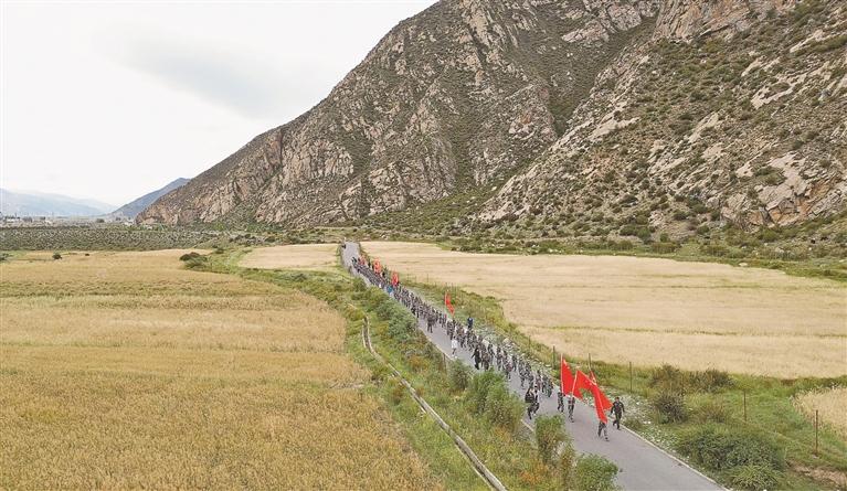 图为学生在重走一段十八军进藏路。记者 格桑伦珠 摄