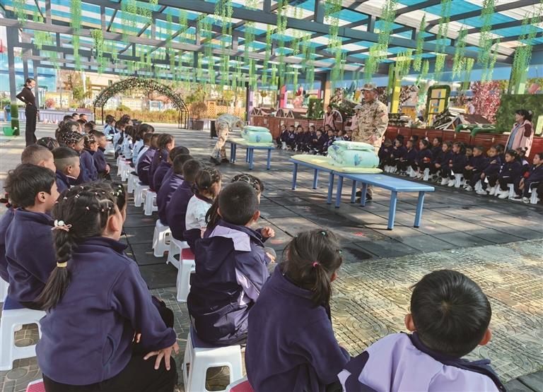 近日,墨竹工卡县第一幼儿园以“国防教育月”为契机,开展国防教育主题活动。