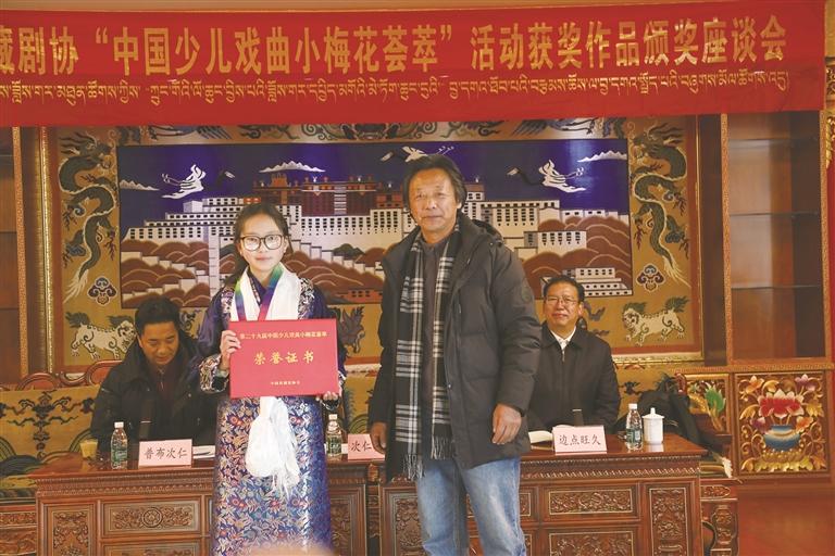1月14日,西藏戏剧家协会召开第二十九届“中国少儿戏曲小梅花荟萃”活动获奖作品颁奖座谈会,为拉萨市第一中学学生罗珍、拉萨市第八中学学生单增班旦转授中国戏剧家协会授予的“小梅花”荣誉证书。