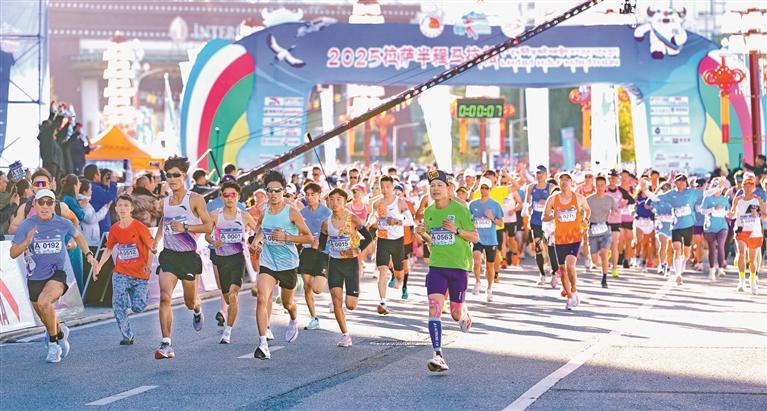 由拉萨市人民政府、西藏自治区体育局主办,拉萨市体育局承办的2025拉萨半程马拉松以“雪域古城,圣地拉萨”为主题,历经五届发展,规模从2018年3000人跃升至7000人,设半程马拉松、10公里竞速跑、5公里健康跑三个组别,赛道串联拉萨河、布达拉宫等核心地标,将高原自然风光与历史人文风情融为一体。经过激烈角逐,选手顿珠次仁、央增拉姆分别获半程马拉松男女子组冠军,索朗多吉、阿旺拉珍等在10公里竞速跑中脱颖而出,选手们以顽强意志诠释了“挑战极限、超越自我”的体育精神。