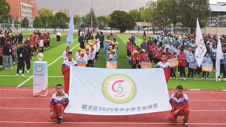 9月22日上午10时,拉萨市城关区2025年中小学生运动会开幕式在拉萨江苏中学举行。