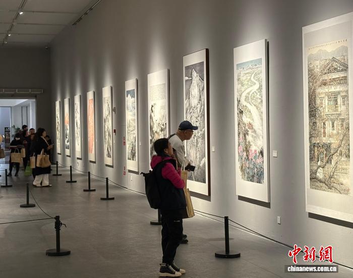 观众在四川美术馆观看第三届川藏美术名家交流展作品。单鹏 摄