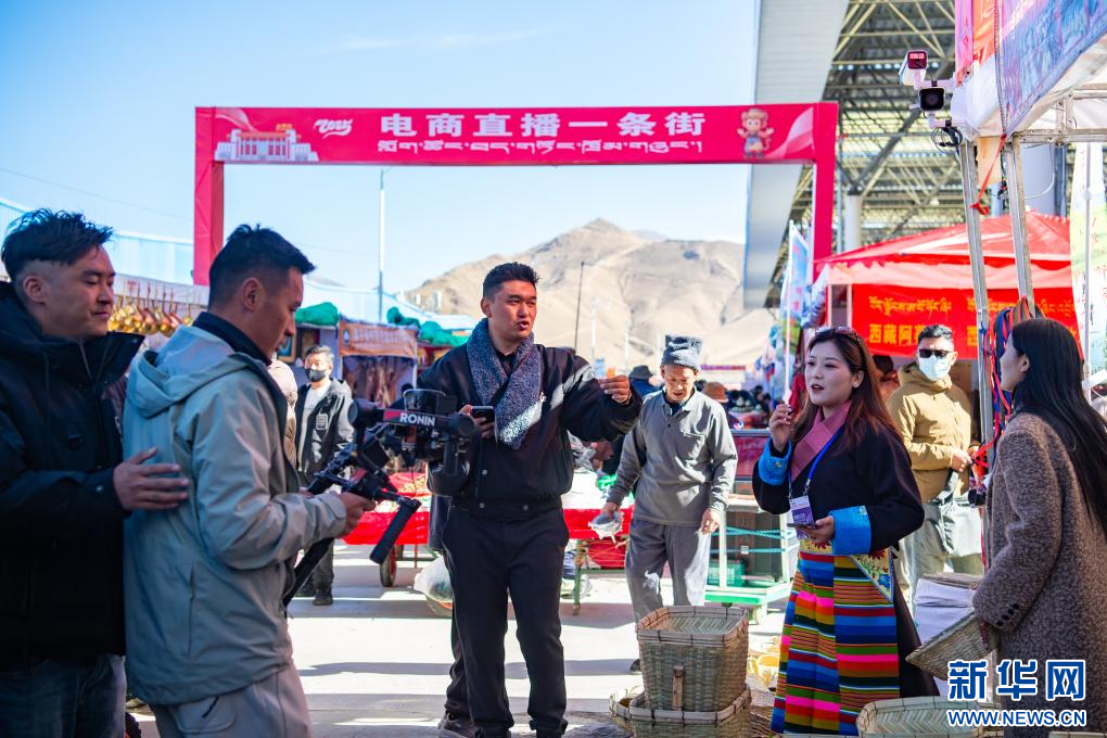 12月1日拍摄的第45届雅砻物资交流会电商直播主场。新华网 旦增努布 摄