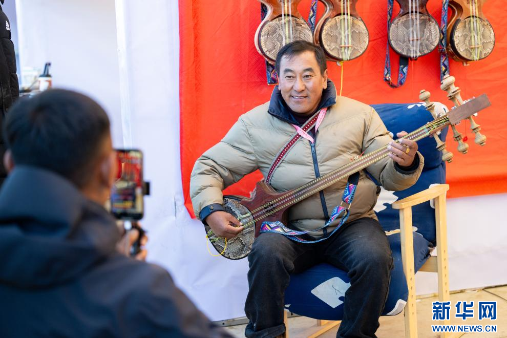 12月1日,一名群众通过直播间介绍扎念琴。新华网 旦增努布 摄