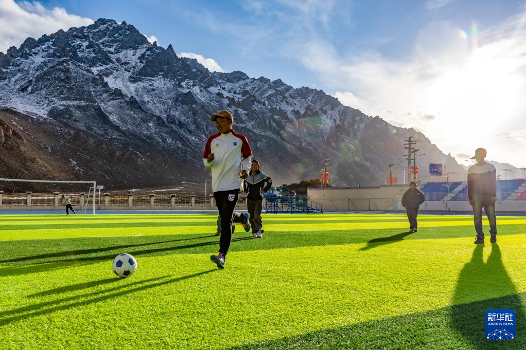 顿珠嘉措是嘉黎县中学初二的学生,也是该校足球队的成员。嘉黎县中学的球场被当地人称为“雪山下的梦幻球场”,球场背靠连绵的雪山,白云飘荡在蓝天。尽管嘉黎县海拔高、空气稀薄,但是当地孩子们对体育运动的热爱不减。