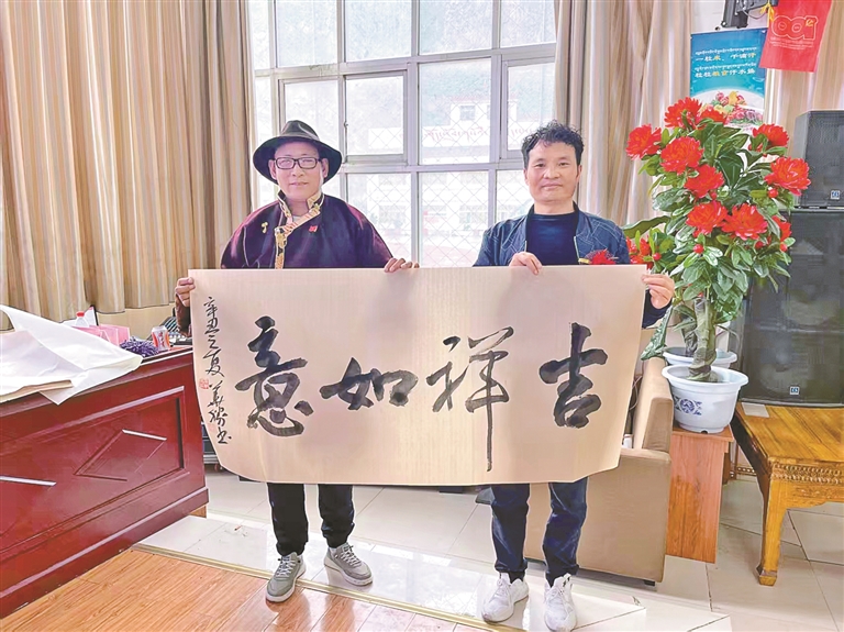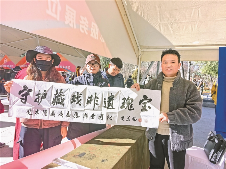 图为侯华胜为觉木隆藏戏志愿者团队赠送书法作品。