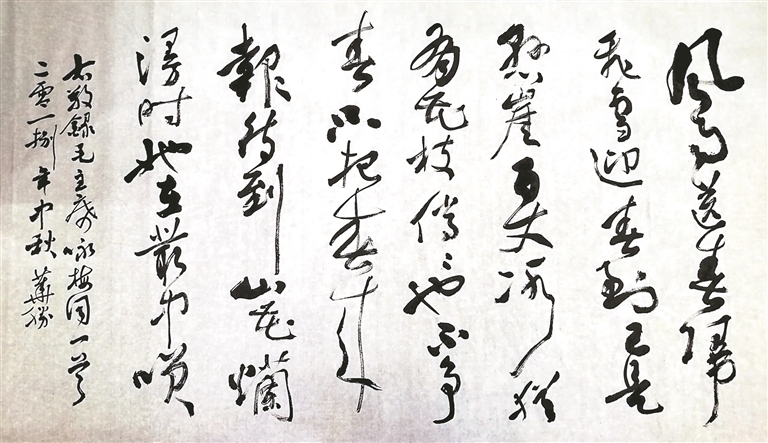 这一刻,时光仿佛倒流——上世纪70年代,来自陕西农村的少年侯华胜,正被电视剧《沧海一粟》中画家刘海粟挥毫泼墨的瞬间所感染,那道“墨色的闪电”第一次照亮了他对笔墨世界的好奇与向往。数十年后,这位少年以其雄浑有力的笔触、开阔磅礴的气势在西藏书法界备受赞誉。