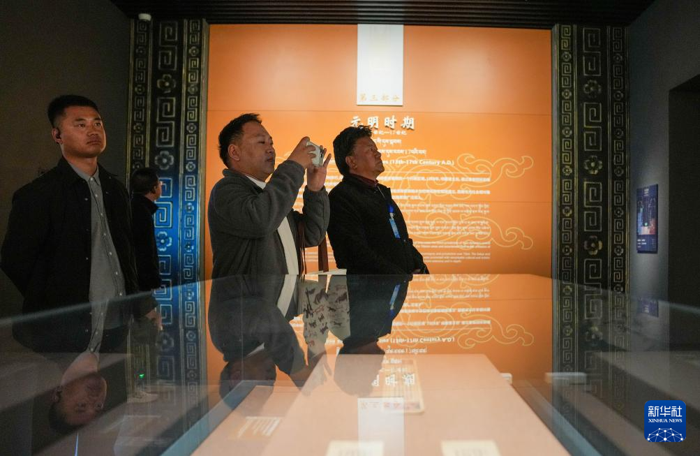 4月17日,西藏全区博物馆馆长培训班的学员在西藏博物馆现场交流学习。新华社记者 晋美多吉 摄