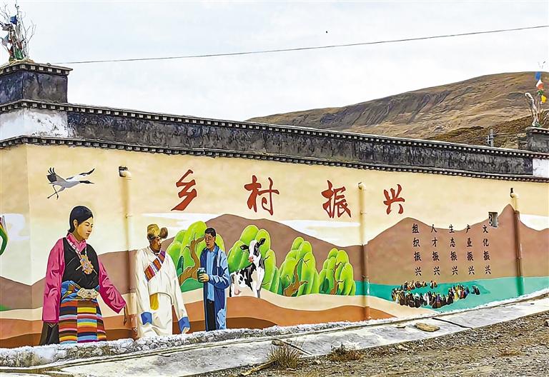 图为桑珠孜区乡村社区文化墙一瞥。 记者 杨子彦 摄