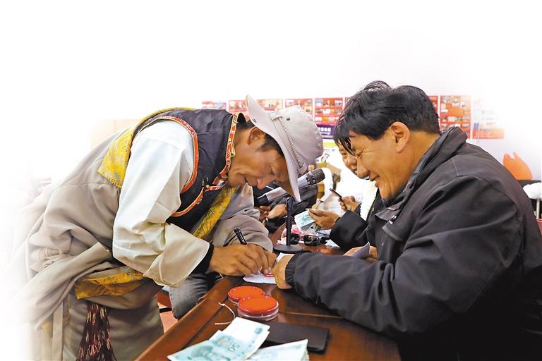 图为改则县改则镇圆梦新居社区合作社分红仪式现场。 记者 达珍 永青 摄