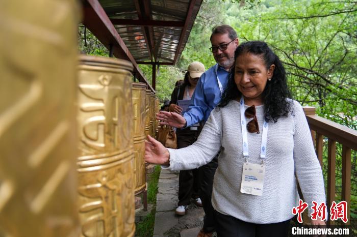 图为6月28日,智利驻华大使巴勃罗·阿里亚兰夫妇在西藏巴松措措宗寺参访。江飞波 摄