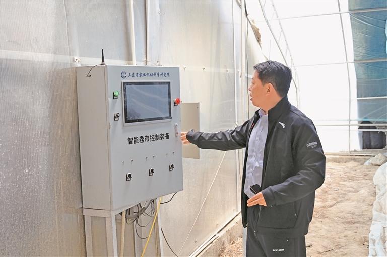 据介绍,智能设施平台主要由数据采集系统、设备的智能控制系统、视频监控系统、智能灌溉系统、统计分析系统、智能监测系统、平台管理系统、移动APP等组成。在其中一座温室里,张立峰为记者一一介绍了集成空气土壤温湿度、土壤EC、光照度等传感器、视频采集系统、智能水肥一体机、自动卷帘机、通风设备等装备,并对其功能进行详细讲解——在手机上远程监测相关数据,一旦出现异常系统即时报警;远程操控卷帘起降,既不用人工出力,又不用人到大棚前;打开水肥一体机,水和肥料根据作物生长情况自动配比,精准滴灌到每一株苗……