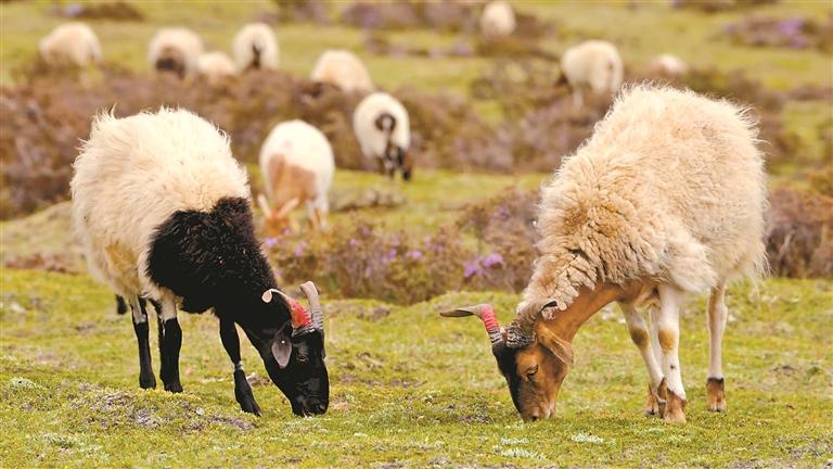 图为贡觉县特有的优良畜种阿旺绵羊,成为村民增收致富的稳定选择。