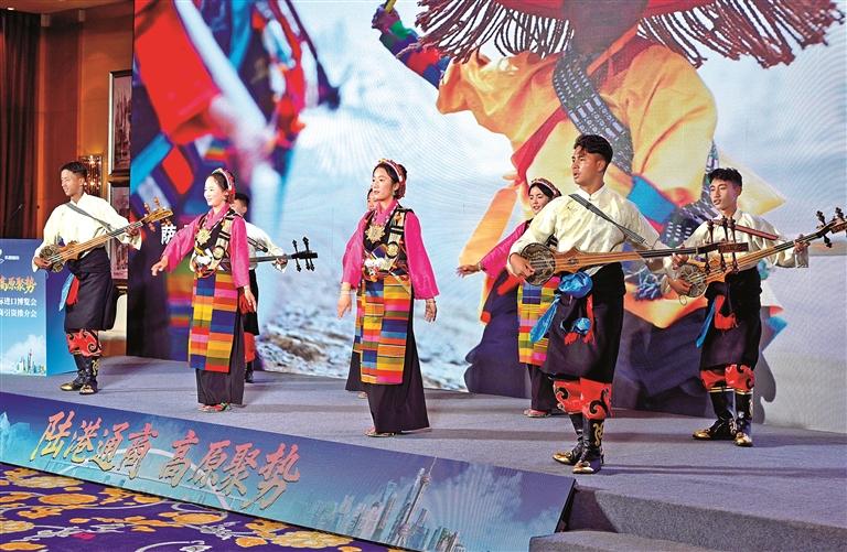 第八届中国国际进口博览会西藏自治区招商引资推介会开幕表演。记者 王敏 索朗琼珠 嘎松卓玛 摄