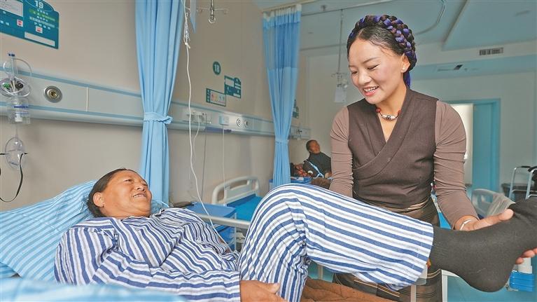 图为南京市第一医院关节外科专家团队了解患者术后康复情况。记者 格桑伦珠 摄