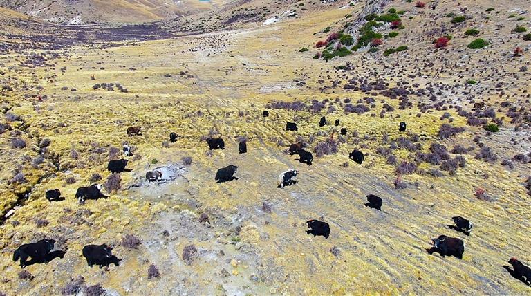 拉龙村放养的牦牛。