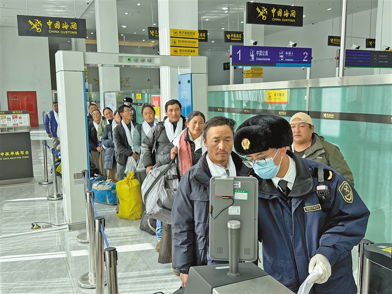 图为拉萨海关所属日喀则海关关员在里孜口岸开展监管查验工作,确保旅客入境顺畅。图/文 记者 李梅英
