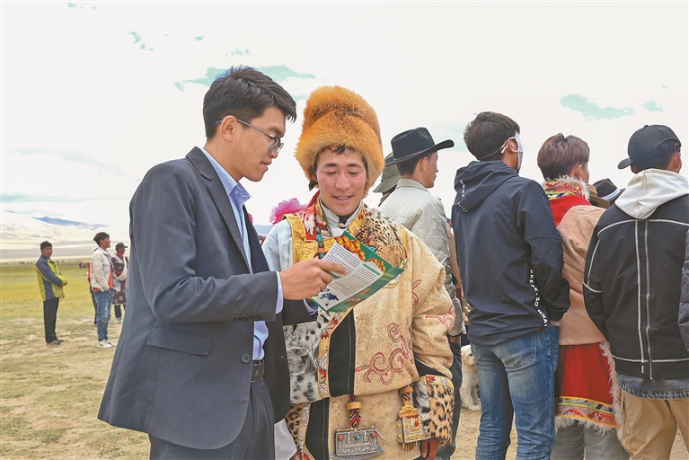 农行西藏分行工作人员为老百姓宣讲金融政策。