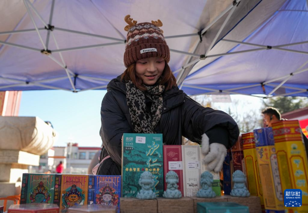 12月10日,商户在拉萨市宗角禄康公园的供销大集上整理商品。新华社记者 晋美多吉 摄