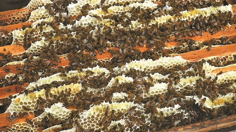 图为蜂箱里的蜜蜂。图/文 记者 武沛涛 通讯员 胡路