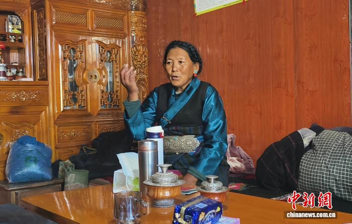 图为定日县长所乡森嘎村村民讲述搬进新家后的美好生活。贡桑拉姆 摄
