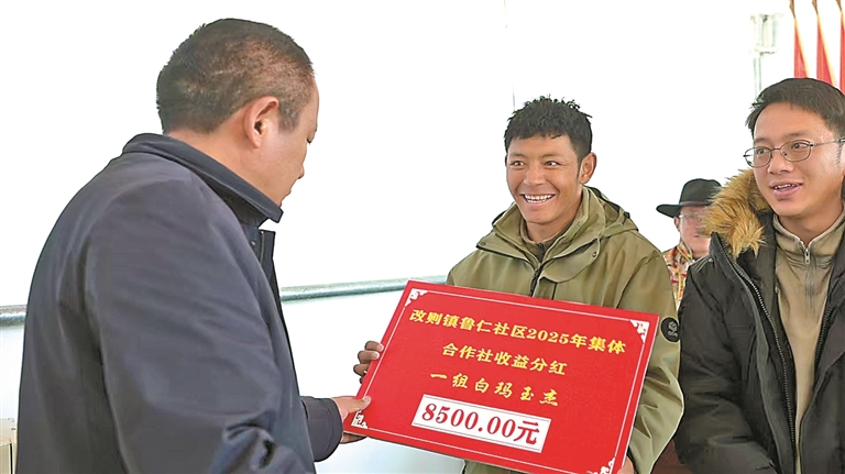 过去一年,该社区立足资源禀赋,深耕工程施工服务、集体资产租赁、工程机械运营、惠民物资采购等核心产业,成功承接乡村道路维修、水坝加固等4项工程,创收124.54万元;盘活21间闲置房屋对外租赁,年租金收益稳定在70.98万元以上;2台集体工程机械完成1个月作业,收益8.84万元;针对高原冬季取暖刚需,通过规模化采购实现购销差价收益9.72万元。四大产业协同发力,全年实现集体经济总收入214.08万元。“从214.08万元可分配利润中,扣除84.94万元集体运转管理资金后,剩余129.14万元全部用于居民分红,惠及399户共1224名居民,红利已通过银行转账精准发放至个人账户。新的一年,社区将持续强化党建引领,深耕富民产业,鼓励居民积极参与和美乡村建设与人居环境提升工作。”社区居委会主任曲桑说。
