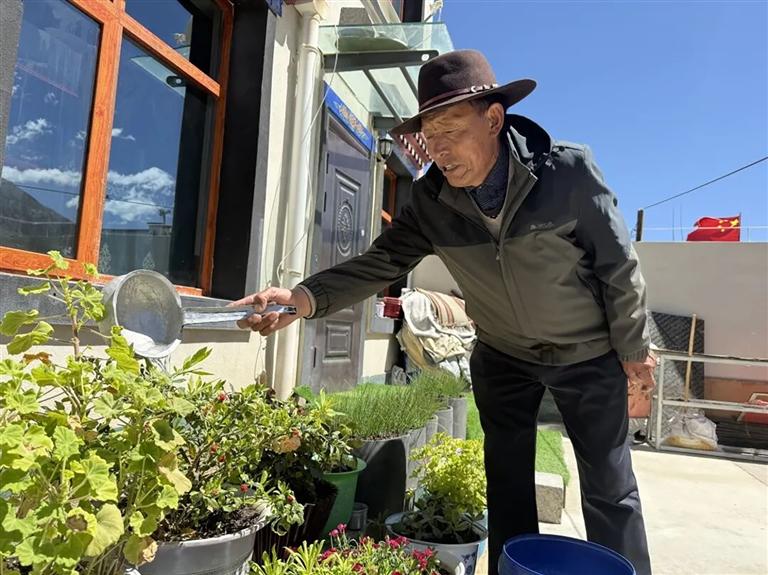 新居养花,村民的日子越过越甜。文/图 通讯员 次旦卓嘎 尉杰
