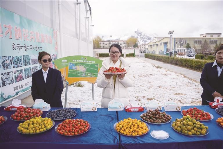 花卉种植基地智能化温室大棚培育的水果。图/记者 阿旺尼玛