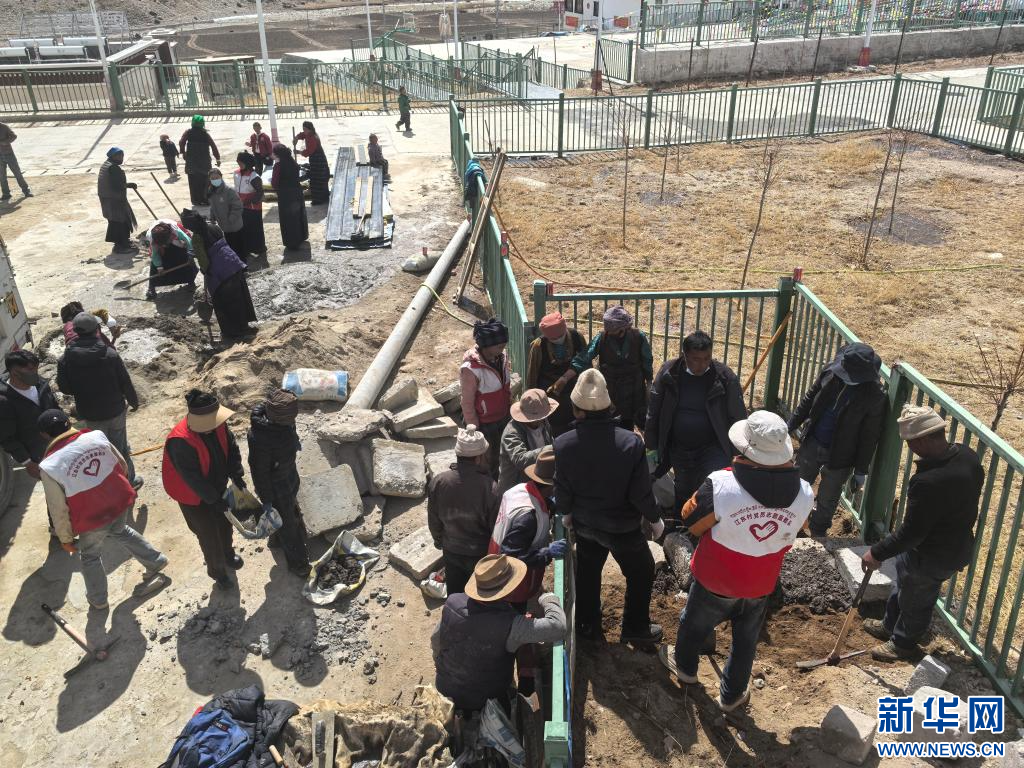 第十四批西藏自治区教育厅驻聂拉木县聂拉木镇江东村工作队与当地群众一起修筑村内小路。(受访者供图)