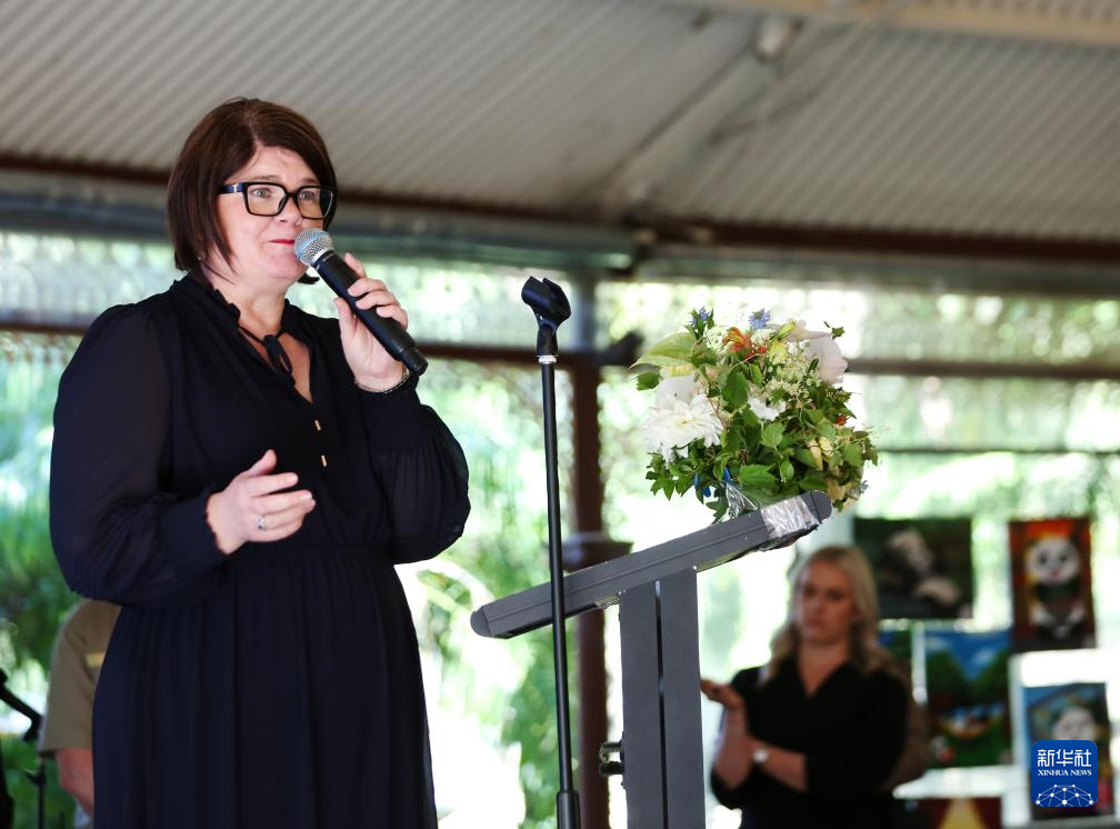 11月14日,在澳大利亚阿德莱德动物园,南澳大利亚州旅游与多元文化部长佐伊·贝蒂森在欢送活动上致辞。新华社记者 马平 摄
