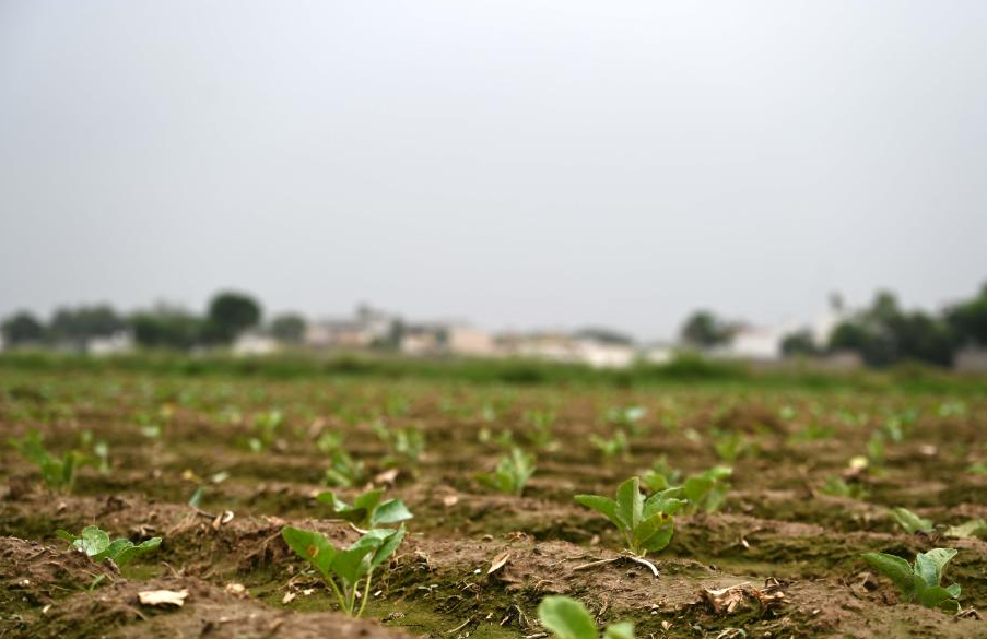 巴基斯坦旁遮普省的阿托克区土地里正在生长的中国花椰菜幼苗。(图片来源:新华社)