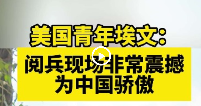 2022年将记录日军侵华罪证的二战相册无偿捐赠给中国的美国青年埃文·凯尔,在观看阅兵式后表示,这场盛典是中国对和平的坚定捍卫和对保家卫国的庄严承诺,现场非常震撼,他为中国感到骄傲!(记者:党贺 视频:党贺 审核:单学英 宋薇)