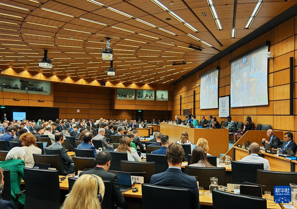 9月10日在奥地利维也纳拍摄的国际原子能机构理事会会议现场。新华社发(中国常驻维也纳联合国代表团供图)