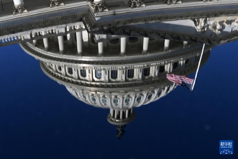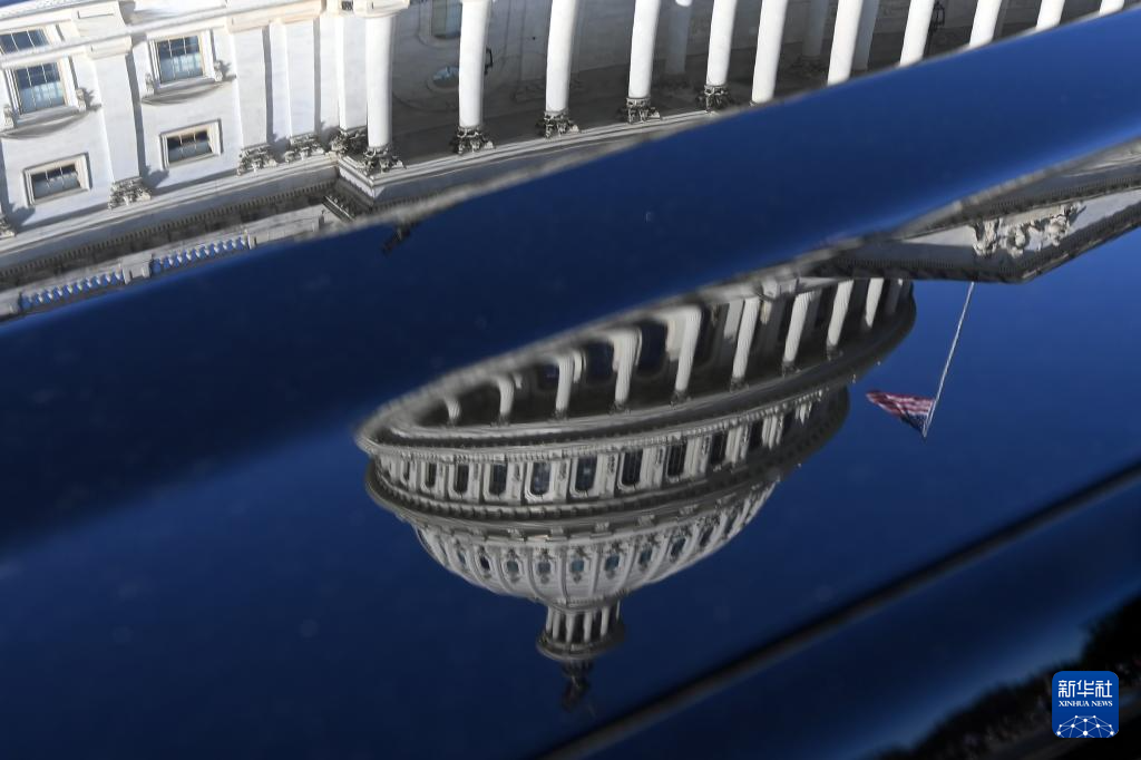 这是10月1日在美国首都华盛顿拍摄的美国国会大厦倒影。新华社记者 李睿 摄