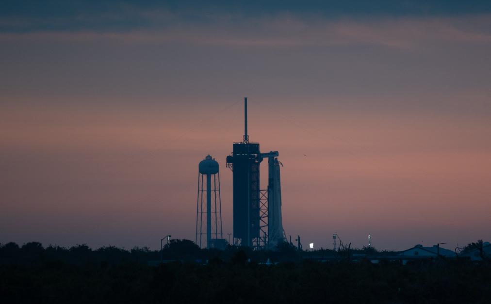 这是2020年5月27日在美国佛罗里达州肯尼迪航天中心拍摄的“猎鹰9”火箭和载人版“龙”飞船。新华社发(美国国家航空航天局供图)