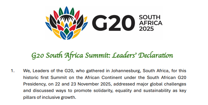 二十国集团(G20)领导人第二十次峰会当地时间11月22日在南非约翰内斯堡开幕。南非国际关系与合作部长罗纳德·拉莫拉在当天下午召开的记者发布会上表示,与会各方已就会议核心议程达成共识,并通过了《二十国集团领导人约翰内斯堡峰会宣言》。