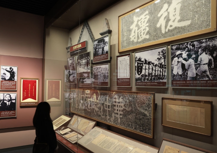 10月25日,参观者在中国人民抗日战争纪念馆参观《不屈的宝岛 丹心向祖国——台湾同胞抗日史实展》。新华社记者 张晨霖 摄