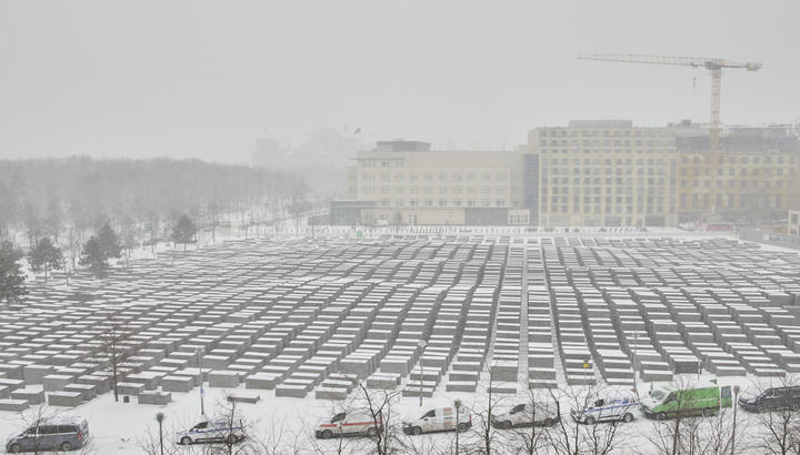 积雪覆盖位于柏林市中心的欧洲被害犹太人纪念碑(新华社发)