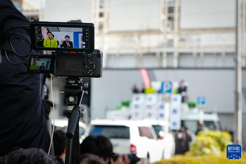 1月27日,在日本东京秋叶原车站附近,媒体拍摄日本首相、自民党总裁高市早苗的街头演讲活动。新华社记者 贾浩成 摄