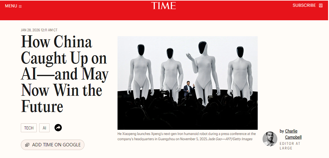 美国《时代》周刊28日发表题为《中国AI如何实现弯道超车 并可能赢得未来》的专栏文章。