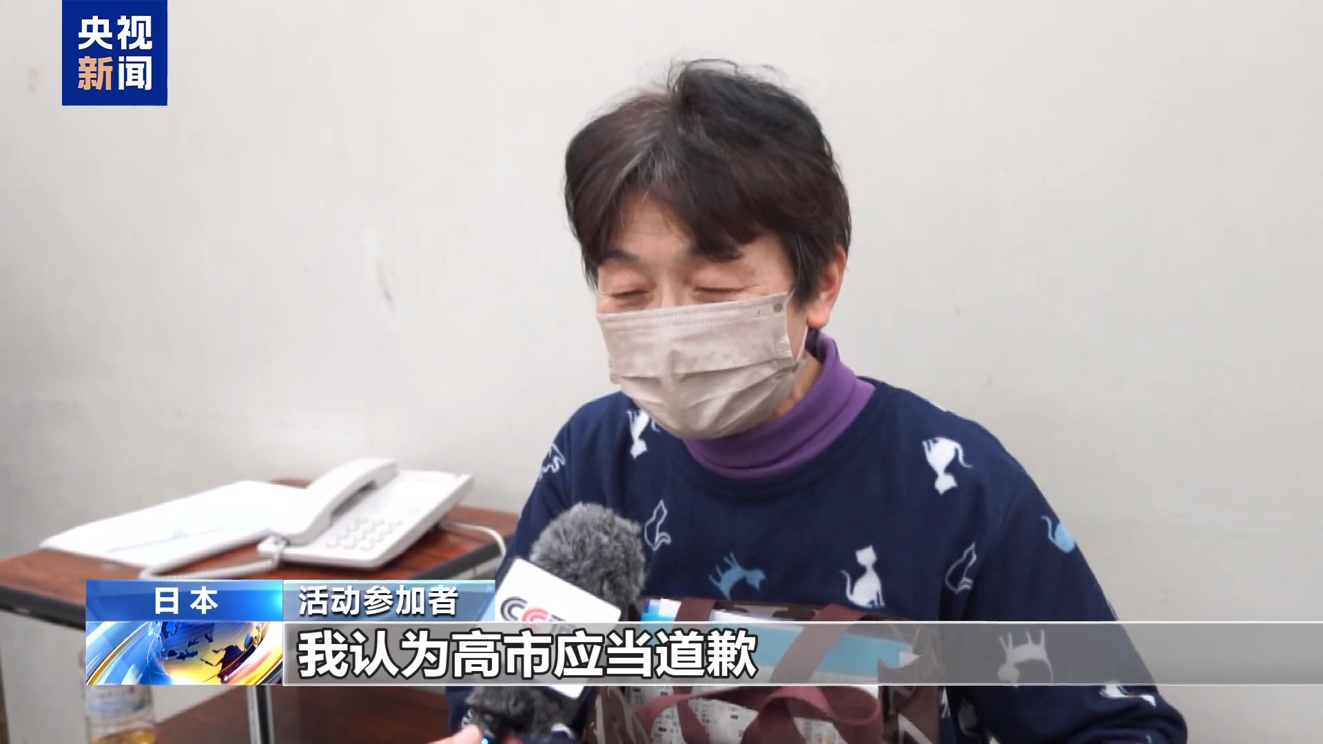 活动参加者:我认为高市的发言是在动摇日中友好的根基,因此她应该立即撤回所谓“台湾有事”的发言并道歉。