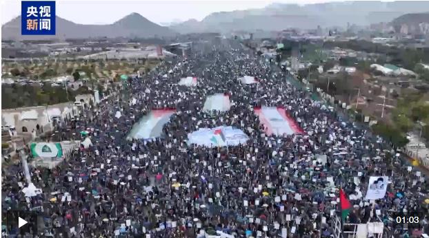 总台报道员 哈桑·巴姆什穆斯:与许多国家举行的集会一样,在也门首都萨那南部的七十广场, 当地民众也举行了大规模游行活动。当前,随着美以持续对伊朗发动军事打击,外界对战争外溢的担忧正在加剧。